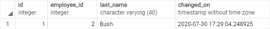 INSERT INTO employee_audits(employee_id,last_name,changed_on)